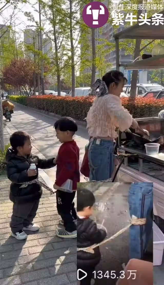 據揚子晚報消息,「媽媽,抱抱,抱抱……」一位身穿粉色上衣、藍色牛仔褲的母親正在攤位前做著炒飯,右膝上繫著一條絲巾,絲巾的另一頭拴在了一個小男孩的腰上,只要孩子不是鬧騰得太厲害,她就手腳麻利地繼續忙著炒飯。「這是我的小兒子,今年2歲,因為沒人幫忙帶,所以跟我一起過來擺攤。」這位母親告訴記者:「小兒子現在正是調皮愛玩的時候,一不留神就跑遠了,我在路邊賣炒飯顧不上他,怕他走丟了,所以才把他系在腿上的。」近日,江蘇南京一位帶著孩子在工地旁賣炒飯的母親引發廣大網友關注,網友稱讚這位母親:手上忙著生活,腿上繫著未來。4月13日下午,揚子晚報紫牛新聞記者在南京街頭找到了這位忙碌的母親,聽她講述了帶著孩子賣炒飯背後的故事。