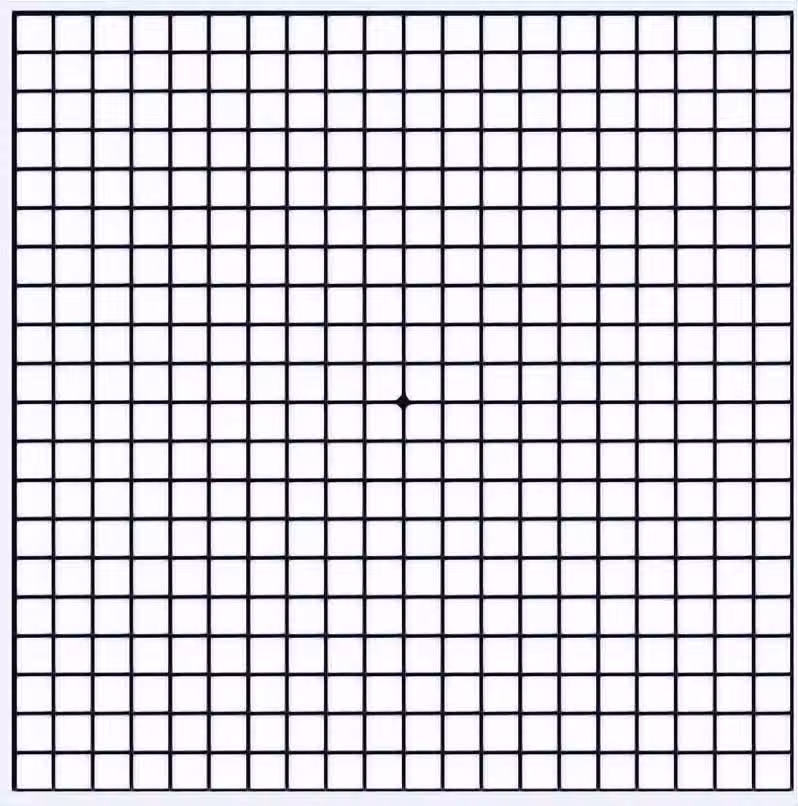 將圖片放在平視30cm左右的位置,可佩戴眼鏡,測試時遮住一邊眼睛凝視中心黑點。會出現以下3種情況,大家注意