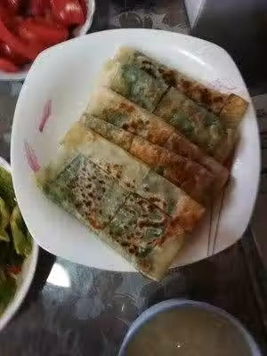 韭菜摘好,洗乾淨,晾乾後切細細的;和韭菜雞蛋餡的時候稍微多放點香油,最後放鹽,這樣不出水;一定要小火煎,煎兩面金黃就可以出鍋了。