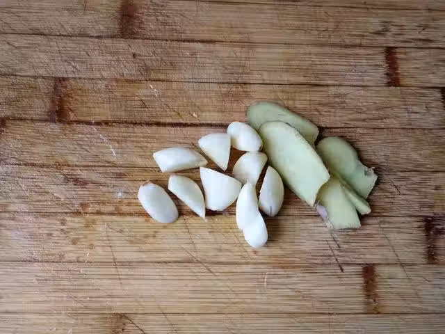 3.姜切片,大蒜對切。