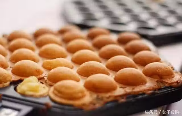 6、用叉子之類的東西挑一些,雞蛋仔就從模子中掉出來
