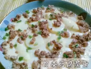 雞蛋,日本豆腐,麻油,鹽,肉末,香蔥