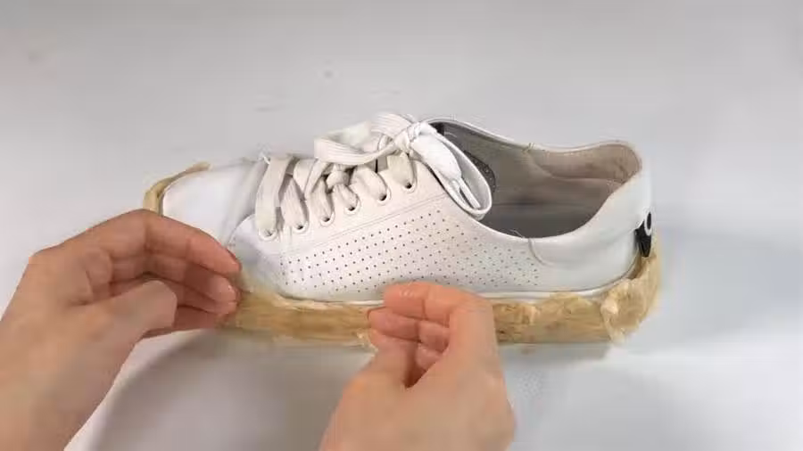 下面進行重要的一步,準備海綿,上面擠上牙膏來擦拭鞋邊。