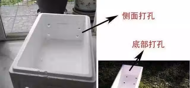 將保麗龍的底部用剪刀穿上三五個小孔,澆水的時候,多餘的水分能快速的流出,將保麗龍子中裝滿土壤,這樣一個簡易的花盆就製作成功了。
