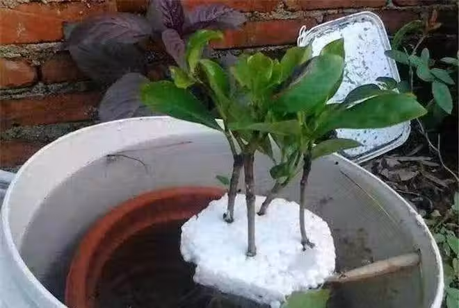 準備一個保麗龍,一個洗臉盆,將保麗龍用剪掉修剪成10*10的小方塊,用筷子在修剪下來的保麗龍小方塊上插幾個洞,將扦插的枝條穿插通過,穿過保麗龍的枝條長度大約在2-3cm左右就可以,一次性可以扦插很多枝條,臉盆中倒入大約5公分高度的水位,將保麗龍板放在臉盆里就可以了,擺放在散射光下,大約7-10天就會生根了。