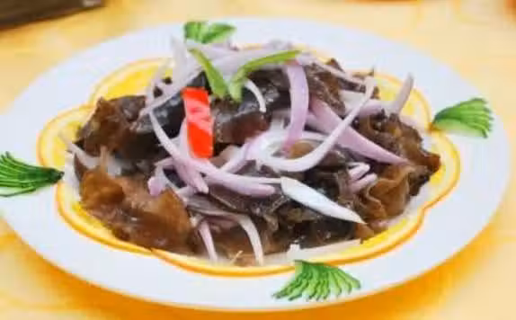 4.把調好的味汁澆在木耳洋蔥絲上。