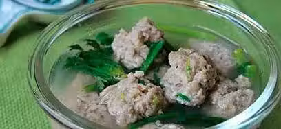 3. 把魚丸放入開水鍋內煮沸後,放入茼蒿菜再煮沸,調味即可。