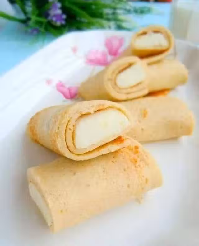 13.然後卷至另一端,用刀切成兩厘米左右的段即可。用少許番茄醬裝飾即可,我忘記了,呵呵