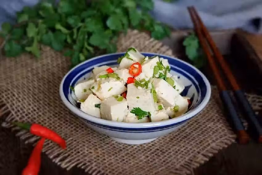 豆腐1塊,小米椒2根,香菜3根,鹽1茶匙,生抽1勺,香油1茶匙