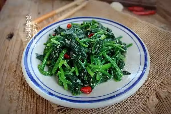 菠菜300克,干辣椒3個,熟白芝麻1湯匙,鹽,蔬果調味粉適量