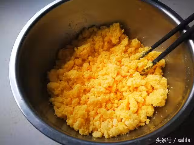 2、攪拌至細玉米面沒有粉狀後加入適量糯米粉。稍等片刻至玉米面不燙手時再進行下一步操作。