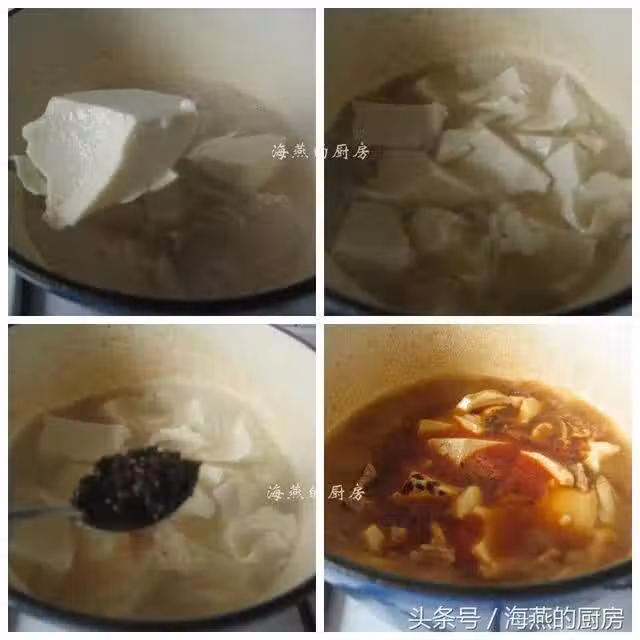 豆腐全部下鍋後調入3大勺老乾媽同燒
