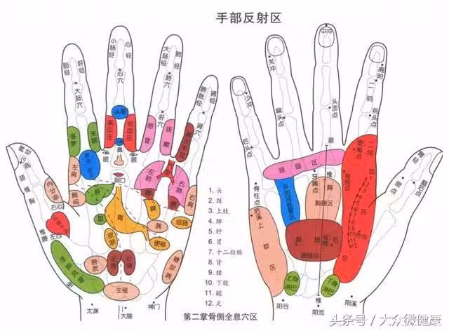 這個特別適合老年人,十指從指根到指尖分別對應著肩、肘、腕及髖、膝、踝。雙手的手指相拍,對相應關節引起的疼痛有很好的緩解效果。