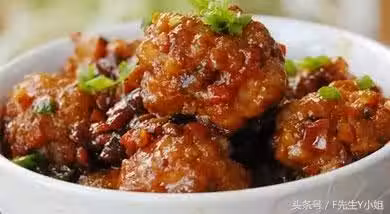 4、入醬料炒勻(醬料的品種可以根據自己的喜好任意添加,我用香菇醬和甜麵醬調製而成的,醬用幾勺就可以了,多了會咸);把蒸好的丸子連湯一起倒入鍋內,大火收汁,並不斷翻炒。使丸子均勻的沾上醬料即可。