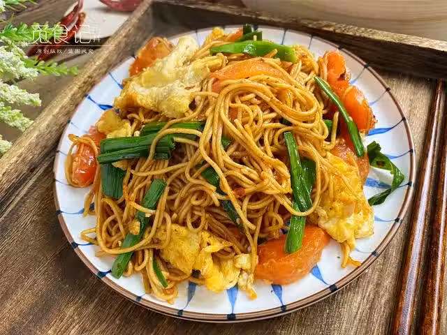 所需食材:細掛麵1小把,雞蛋1個,西紅柿1個,蒜苗3根,蚝油1勺,老抽2勺,老乾媽1勺,鹽、雞精、胡椒粉適量。
