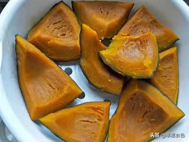 2、蒸熟後的南瓜去皮後切成小粒備用,不需要切的太碎了。