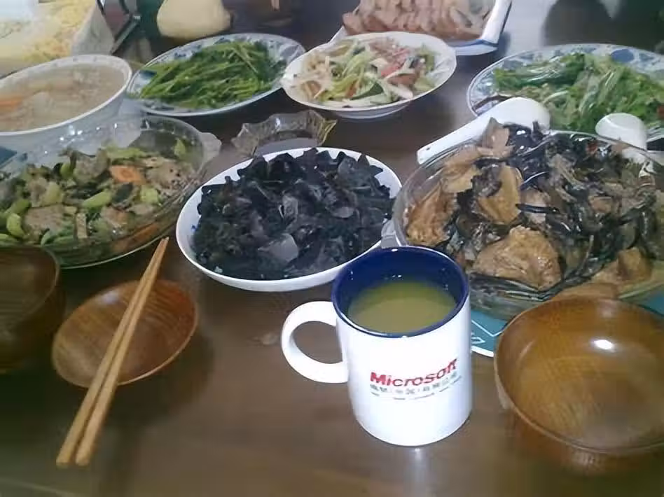 我一個快70歲的老太婆,站了一個多小時,好不容易做了一桌子菜,家裡十幾口人,我做得快吃得也快。等我坐下來,吃了一小會,大家都吃得差不多了。