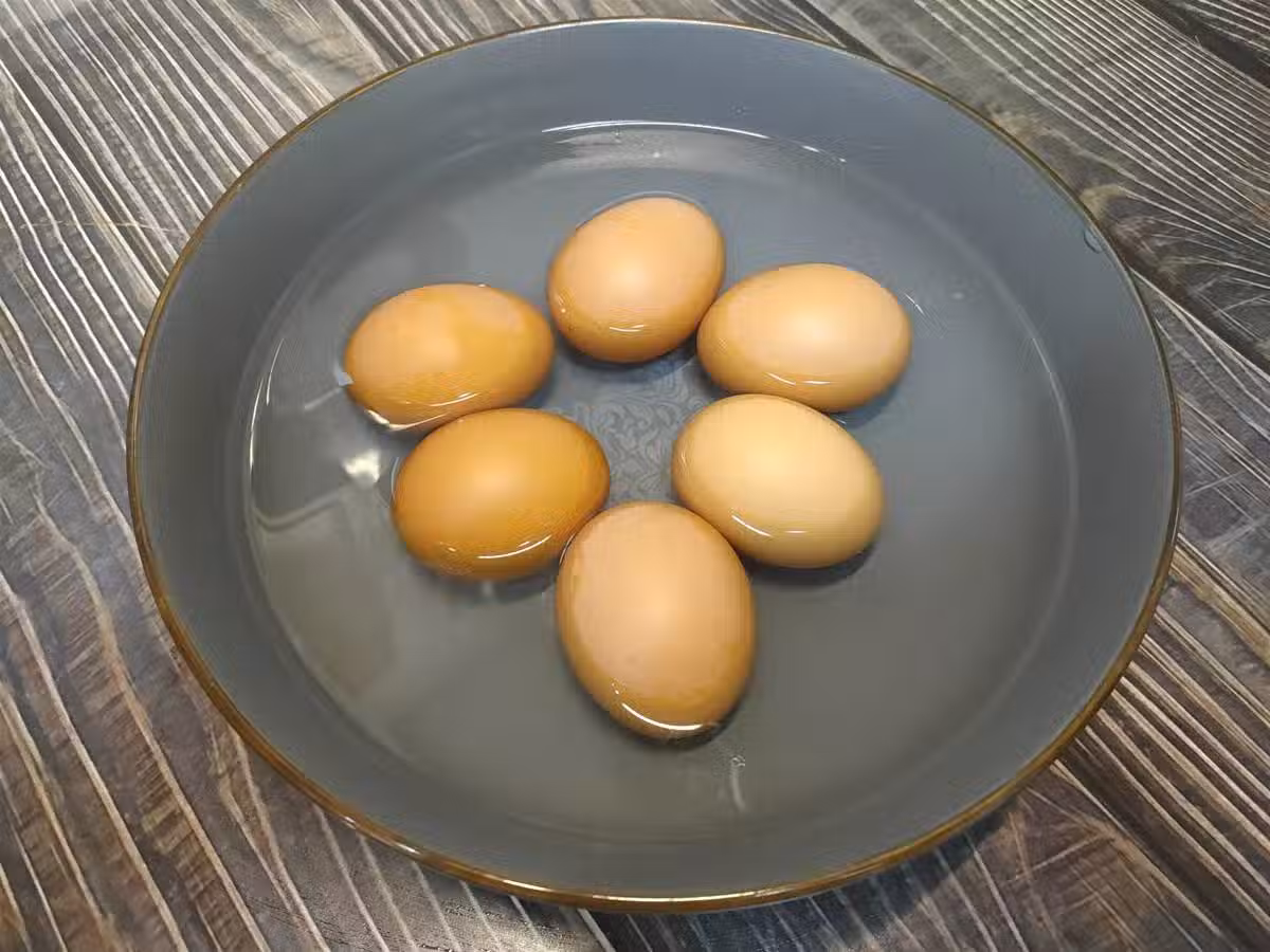 拿出來以後的雞蛋放入涼水中,靜置幾分鐘左右,這樣的雞蛋會更加好剝開,更好吃!