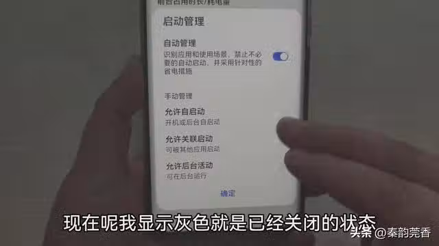 現在呢我顯示灰色就是已經關閉的狀態。關閉這些開關之後,那麼這個應用就不會再在開機聯網時偷偷在後台運行,即省電又避免手機卡頓。上面自動管理的開關,如果是大家經常用的應用,我們可以將它開啟。其他的這些應用,大家都可以按照同樣的方法來進行設置,這樣設置的話就能大大地降低手機發熱,發燙以及卡頓的問題。