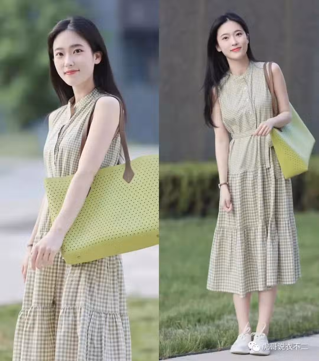 很多人喜歡無袖設計帶來的簡約清爽,但也正因為沒有了對手臂的遮擋效果,會比較考驗手臂線條,像圖中這件無袖連衣裙,如果是上半身不夠清瘦的話,就反而會暴露自身的缺點。