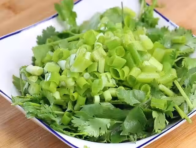 準備好一把香菜清洗乾淨且車給小段,在幾根香蔥切成蔥花備用