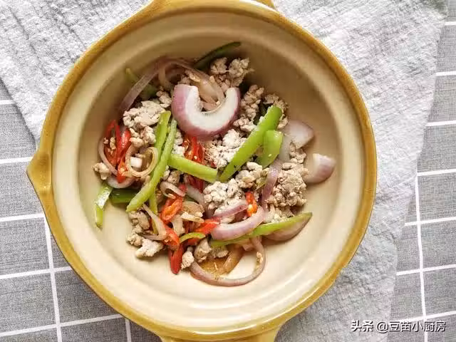 我們準備一個小砂鍋,把炒好的肉末、蔬菜放在鍋子底部。沒有砂鍋用其他的小鍋一樣哦,實在沒有就用家裡炒菜的鍋,只不過在端上餐桌的時候需要盛出來啦。