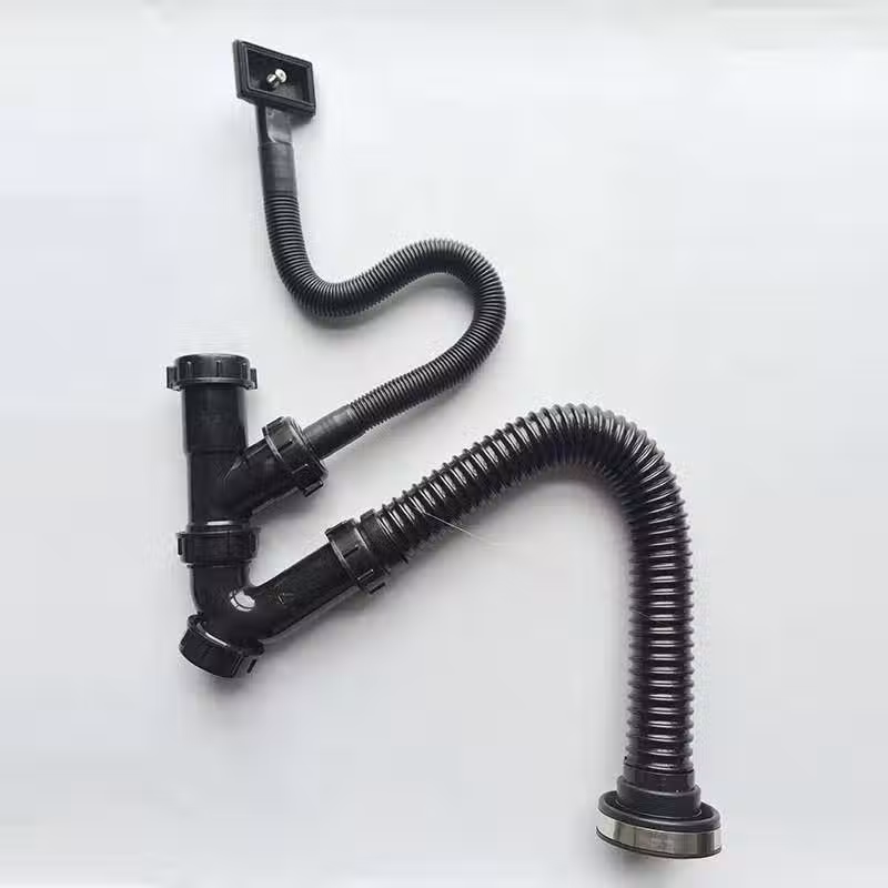 和PVC管道連接的還有下面的一根波紋軟管,波紋軟管的材質基本上也是塑料的,遇上熱水,也會出現受熱變形的問題,甚至會因為高溫而出現斷裂。