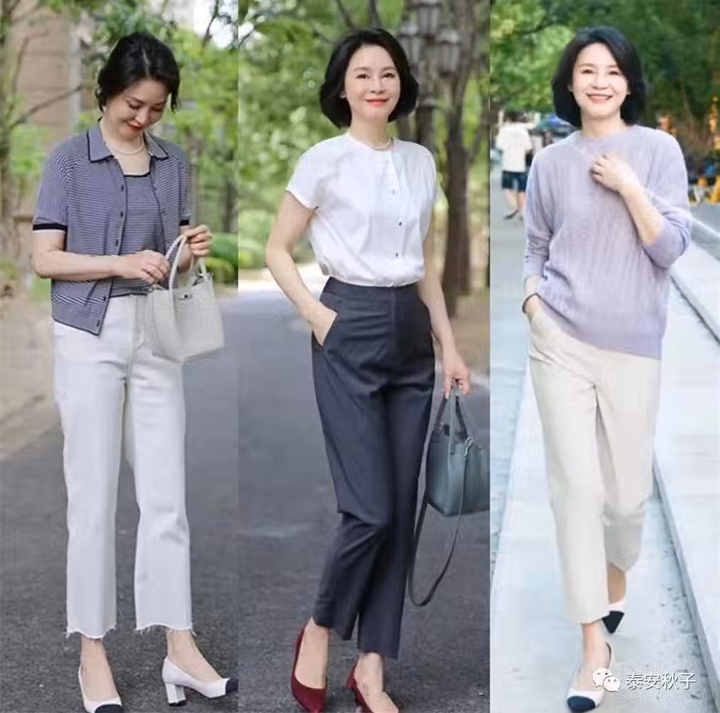 不知道具體該怎麼搭配的50+姐妹,可以利用離體性佳的高腰修身褲,輕鬆穿出「紙片人」既視感。