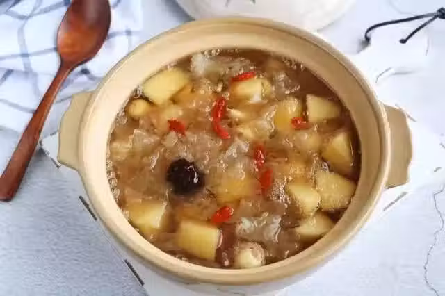 銀耳蓮子湯里再加入一點蘋果塊,會讓湯品口感更為香甜,層次性上也會更加豐富呢!看著這道晶瑩剔透的湯品,一種幸福感會騰然而生哦!這幾天每天都給家人盛上一碗銀耳蓮子蘋果糖水,一家人一起品嘗這份甜蜜真的好幸福呢!春節過後,女人要多喝這道湯水,一天一碗,香甜軟糯,越喝越美麗!這麼好的美食,你可千萬別錯過哦!
