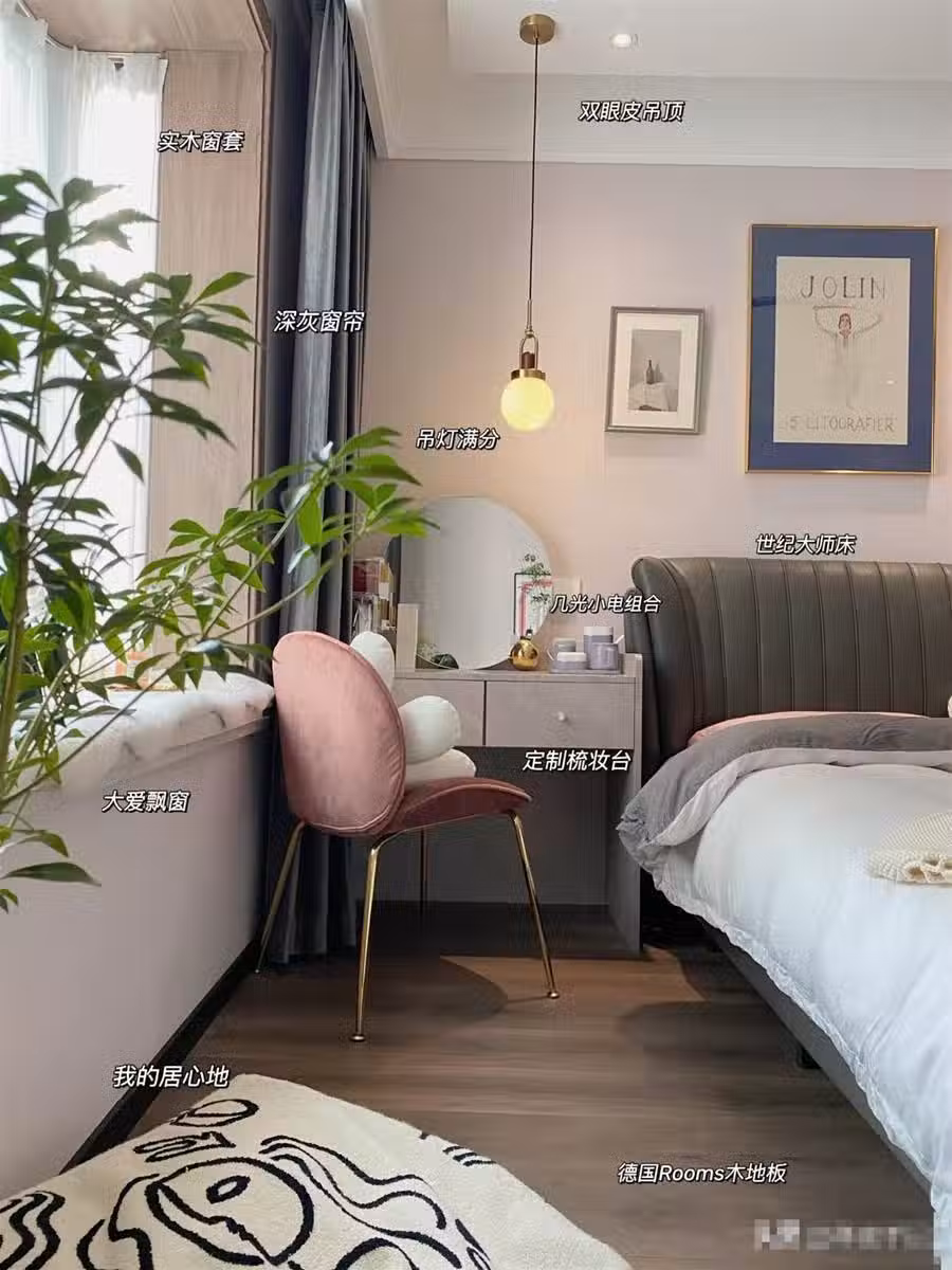 主臥在硬裝上和客廳差不多,包括吊頂和只刷乳膠漆的背景墻,不過配上簡約高顏值的軟裝傢俱後,不僅簡潔大氣,而且營造了一股溫馨舒適的氛圍,一進屋令人極度舒適。