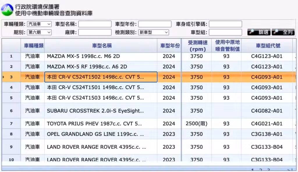 其餘政府資料庫的送測資訊提前曝光了CR-V的動力跟車系編成。(圖片來源/ 環保署)