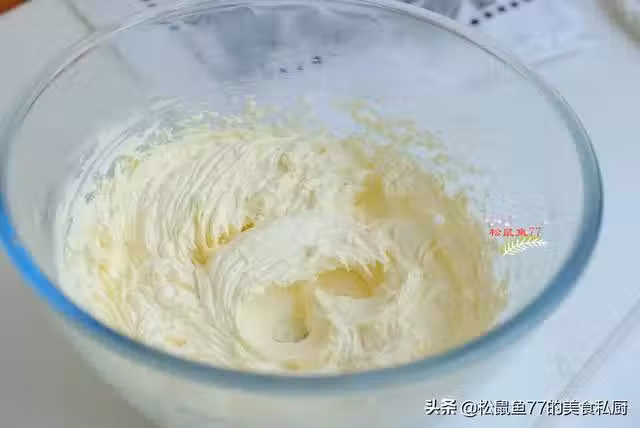 6、現在開始過篩麵粉,一次性篩入到打發好的黃油中,這個也不需要分次。