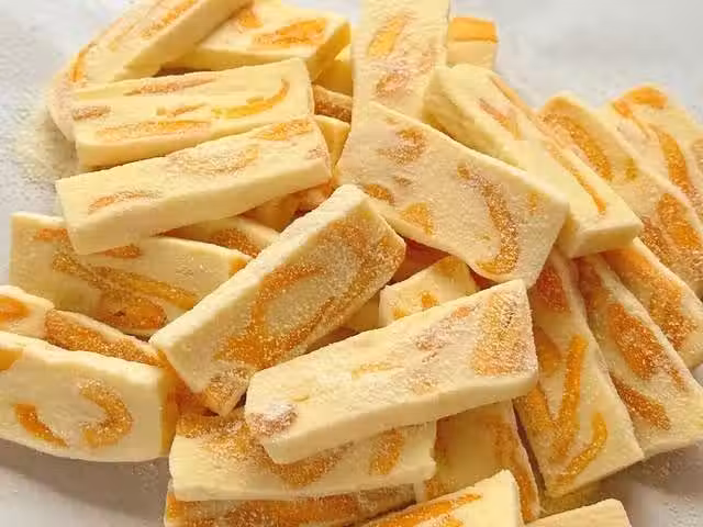 分享一款非常火 爆的芒果奶糕,放多久都不會變硬噠, 芒果乾可以換成任意一種自己喜歡的堅果和果乾。就變成其它的口味的奶糕啦。