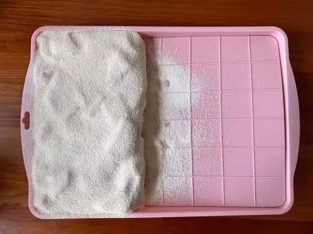 7、等到完全涼透。切成薄片,再篩一點奶粉上去,就可以了!