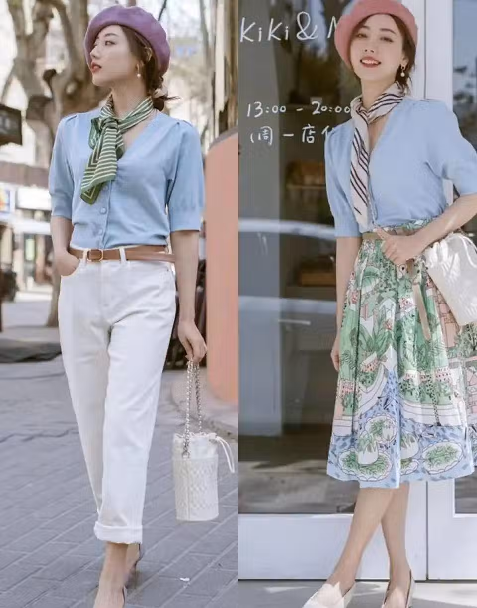可以說是非常青春的顏色了。喜歡走減齡甜美路線的女性不妨搭配淺藍色的連衣裙或者碎花裙,時髦減齡又不落伍。