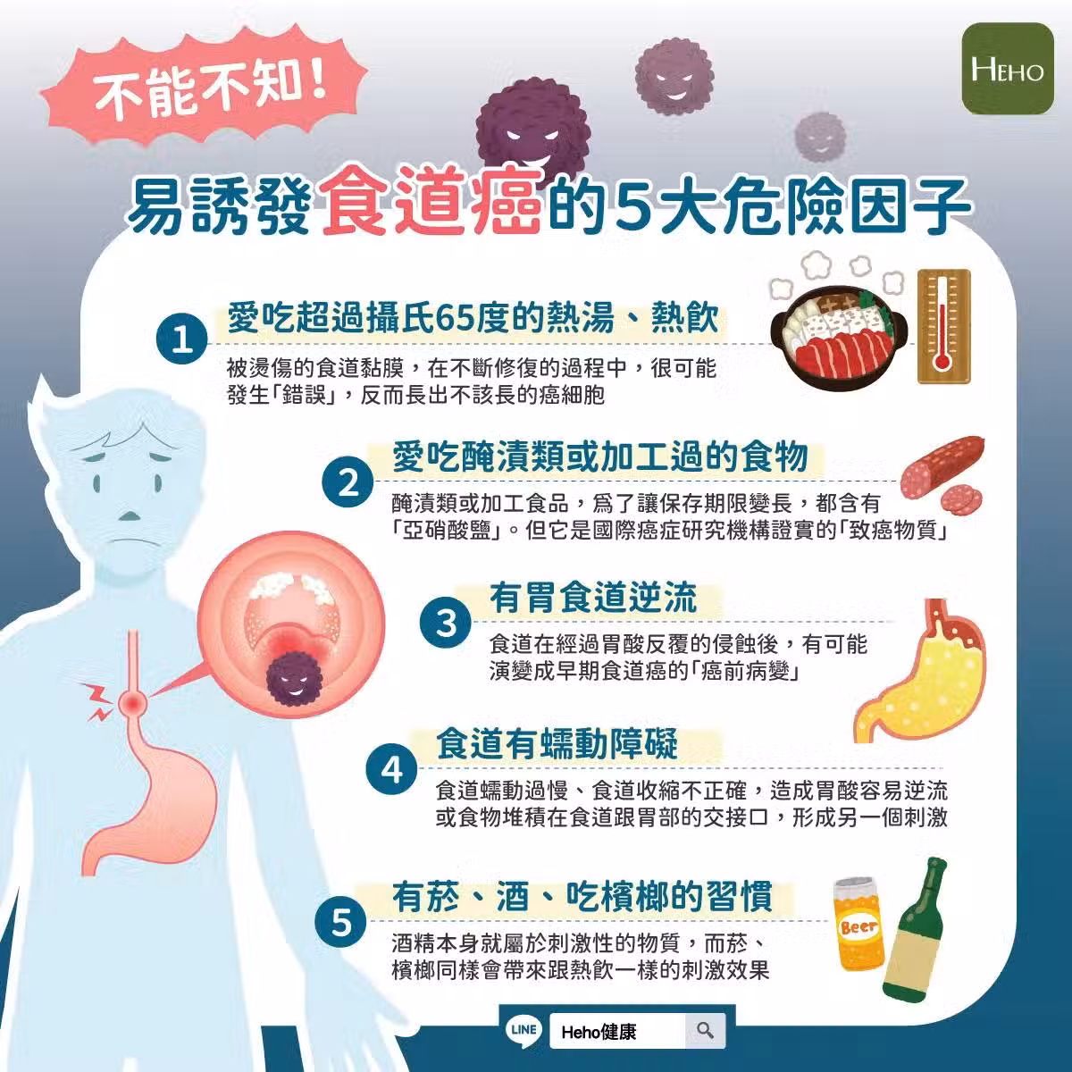 吳醫師提醒,除了吸菸、喝酒和嚼檳榔等因素會增加罹患癌癥的風險外,「胃食道逆流」以及過熱的飲品溫度超過65度C也是可能致癌的原因。
