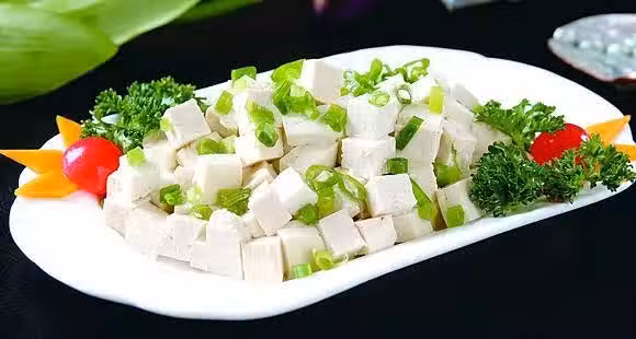原料:滷水豆腐200g、小香蔥50g、香油適量、鹽適量、味精適量
