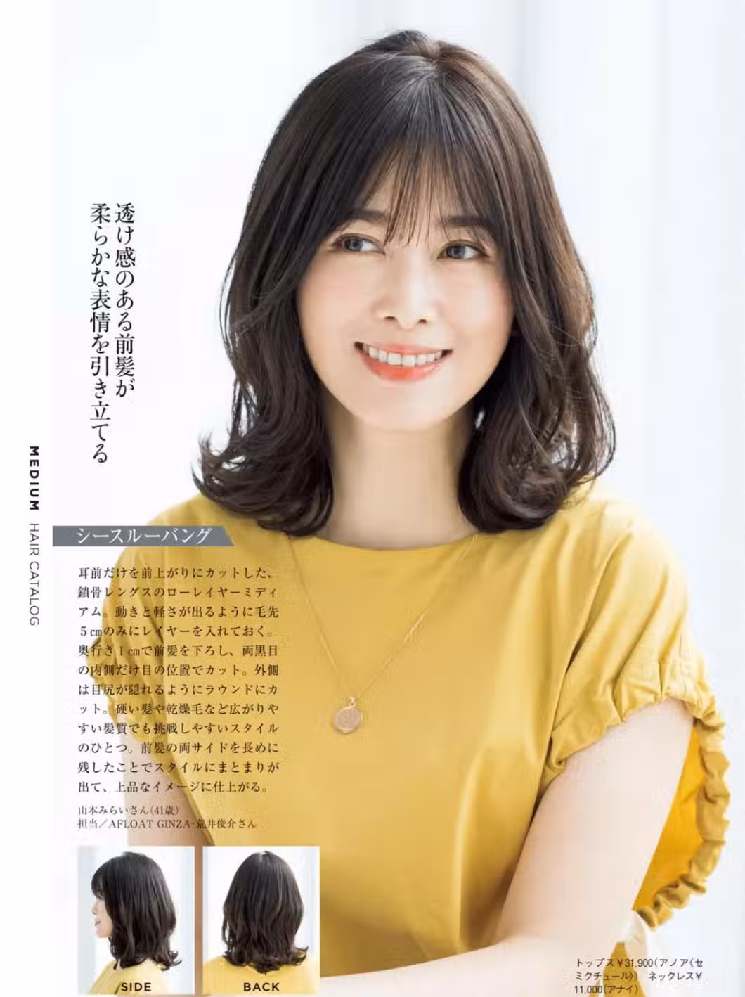 打造中長雲朵卷髮,需要注意的細節在於劉海,大多數成熟女性隨著臉上膠原蛋白的流失,太陽穴和臉頰兩側的線條就容易凹陷,這時就要藉助劉海來進行修飾。 下圖示範的就是一片式的劉海,既輕盈又略帶存在感,髮絲直接與側面的頭髮連接在一起,在解決臉型煩惱的同時、也帶出一片優雅知性的氛圍感。