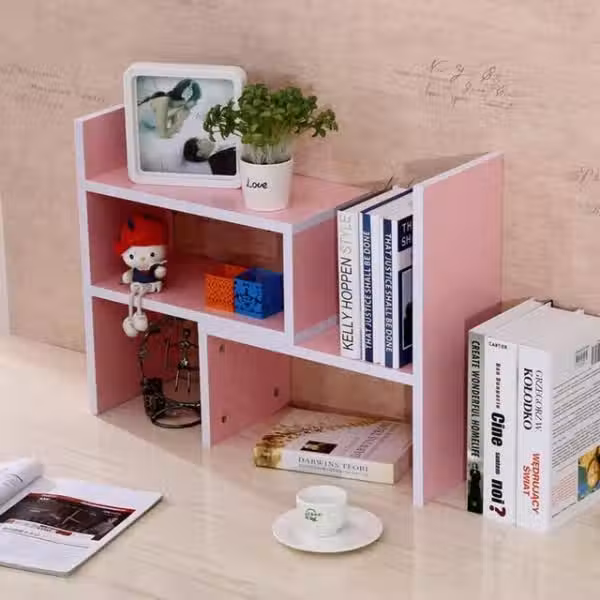 很實用的一款桌面書架。簡約時尚的隔斷設計,巧妙地增加了桌面的儲物空間,讓桌面變得更加立體、整潔。有多個隔層,便於分類放置不同的物品,除書籍之外,多肉植物、相框、文具等雜物也可以放在上面哦。多種顏色可選,粉色和藍色很小清新,淺胡桃色(原木色)貼近自然,柚木色和黑色沉穩大氣。