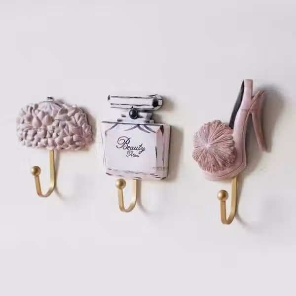 尋常的掛鉤也可以變得如此具有設計感,把家裝點的更加溫馨美麗。採用香水瓶、高跟鞋、吉他等元素,樹脂材質手工彩繪,高承重,堅固耐用,實屬藝術與實用的完美結合。可適用於臥室、客廳、廚房和服裝店等空間。