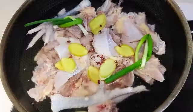 2、鍋中浮沫撇乾淨後,把雞塊兒煮個兩三分鐘用漏網撈出控干水分,然後將雞塊兒倒入砂鍋中,並把提前切好的榴槤壤也放入砂鍋中,再依次放入八角、花椒、百合、大棗、黃芪,接下來向砂鍋倒入足量的開水,加水量沒過雞塊兒即可,防止開鍋後水溢出,把榴槤殼蓋在上面把鍋蓋蓋上就可以開大火燉了。