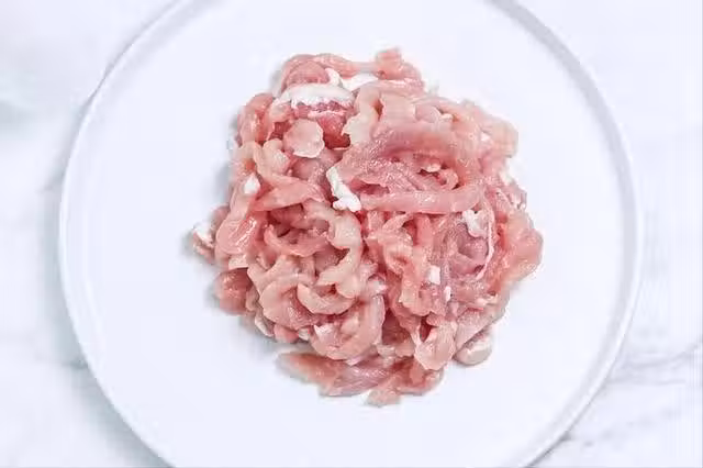 2、下面準備來腌制啦,不放料酒,應該放什麼?大家可以試試,把花椒水用開水沖泡一下,沖泡成一碗花椒水,待其晾涼之後,將其倒入肉絲中,充分攪打一會兒,然後來腌制,則可以去除大部分的腥味,比料酒效果好。