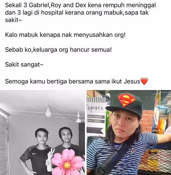 其中一名死者加布里爾的妻子在面子書上悼念丈夫,除了表達悲痛心情,還怪罪那位醉駕司機,破壞了別人的家庭。