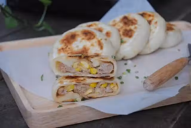 食材:麵粉200克,溫水115克,玉米30克,豬肉餡160克,醬油10克,鹽1克,胡椒粉2克,料酒3克