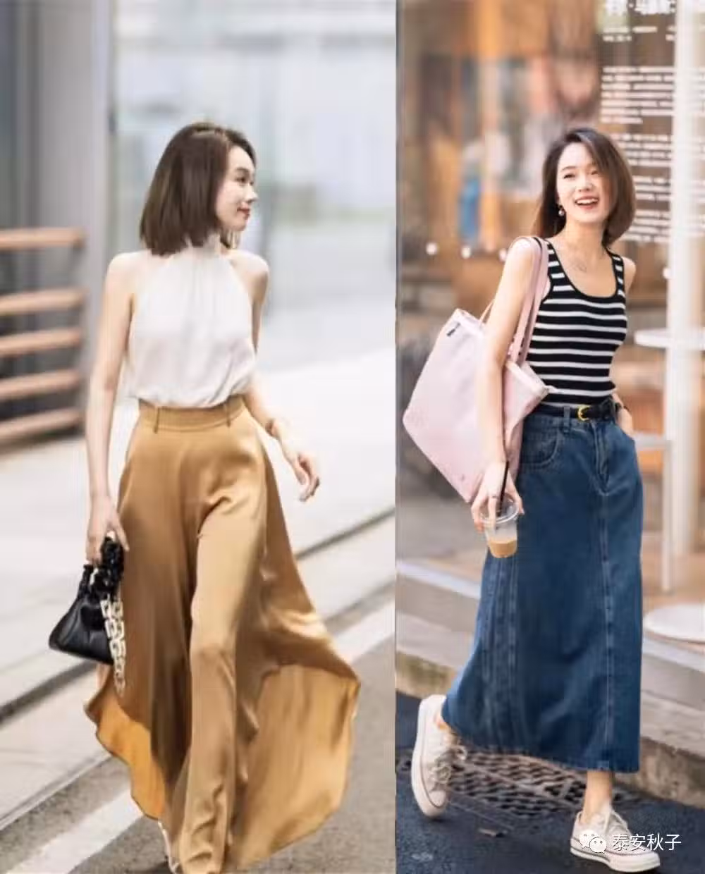 可以利用「上短下長」的搭配技巧,將其與短款小衫相互搭配,能夠優化上下半身的比例。或是把襯衣或T恤衣角塞進裙子裡,想不在視覺上顯高都難。