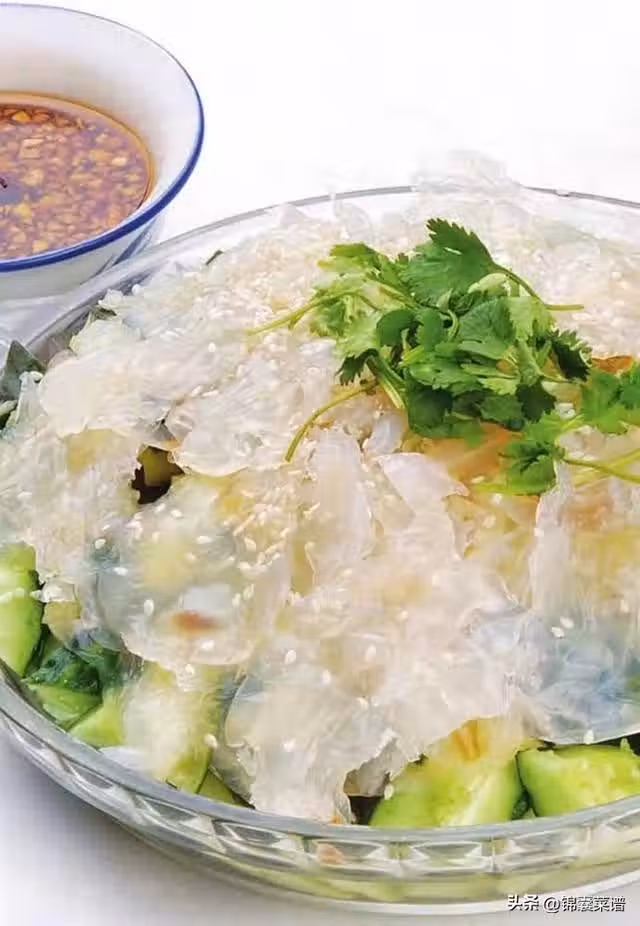 ❷用料酒、蒜末、蔥花、薑絲、豆豉蓉、辣椒油、醬油、雞精、鹽、香油調成調味汁;粉皮切成片,在沸水中汆熟,瀝干水分,與調味汁拌勻,倒在魚身上即成。