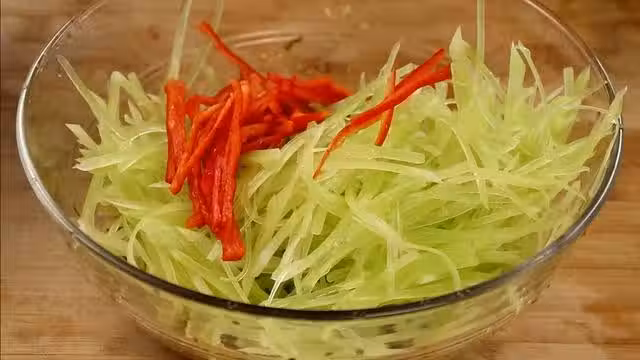 2.蒜拍碎剁成末,放入盆中,放半勺鹽,半勺糖,再放適量香醋,生抽,少量香油,喜歡吃辣可以放點辣椒油,再切點香蔥放入盆中,攪拌均勻將調料化開。