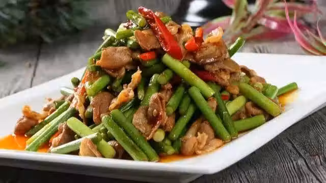 將炒好的蒜苔炒肉倒入盤中,可以撒上一些蔥花或香菜作為裝飾,增添顏色和口感。現在一道口感鮮嫩、香氣撲鼻的蒜苔炒肉就完成了!這道菜色香味俱佳,蒜苔的清香與豬肉的鮮美完美融合,令人垂涎欲滴。不僅如此,蒜苔還有許多健康益處,因此它是一道既美味又有營養的家常菜。蒜苔富含維生素C、維生素B6、膳食纖維和礦物質等營養成分,對身體有許多好處。它具有抗氧化和抗炎作用,有助於增強免疫力,預防感冒和其他疾病。蒜苔還具有降血脂、促進消化和清熱解毒的作用,有助於保持健康的生活。