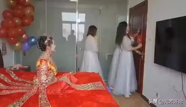 綜合陸媒報導,事情發生在山東青島的一場接親儀式上,當時一身紅禮服的新娘坐在床邊等候新郎的到來,三名伴娘則牢牢的把門守住,如果新郎和伴郎團要想進來就必須給紅包。