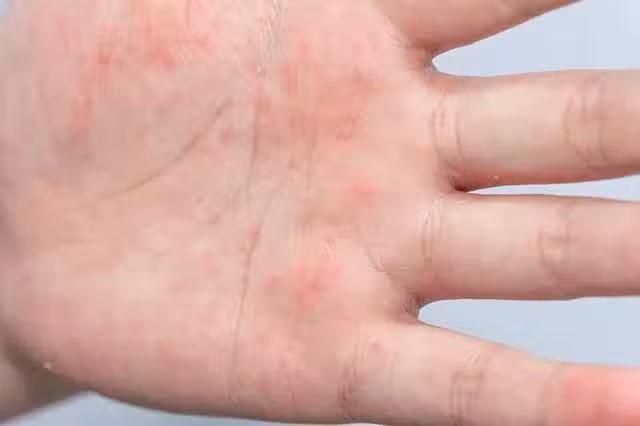 肝掌是指手掌大拇指、小指根部大小魚際皮膚處出現片狀充血、紅色斑塊,在施加壓力後會變成蒼白色,壓力消失後又會變紅。出現肝掌與肝功能下降導致雌激素代謝滅活失衡相關,大量的雌激素在體內堆積容易刺激毛細血管擴張,誘發肝掌發生。